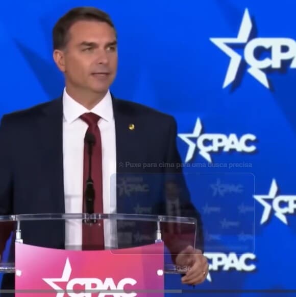 O discurso de Flávio na CPAC teve forte conteúdo político e ideológico. O senador atacou o presidente Lula, disse que o petista e o PT são "abertamente antiamericanos", acusou o governo brasileiro de se alinhar à China e afirmou que Lula teria atuado para evitar que facções criminosas brasileiras fossem classificadas como organizações terroristas nos Estados Unidos.